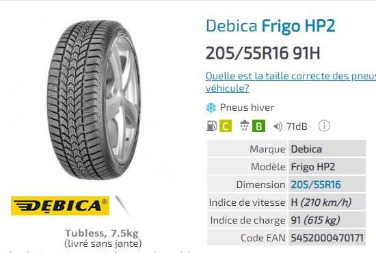 Taille : 205/55R16 - Classe 91H
